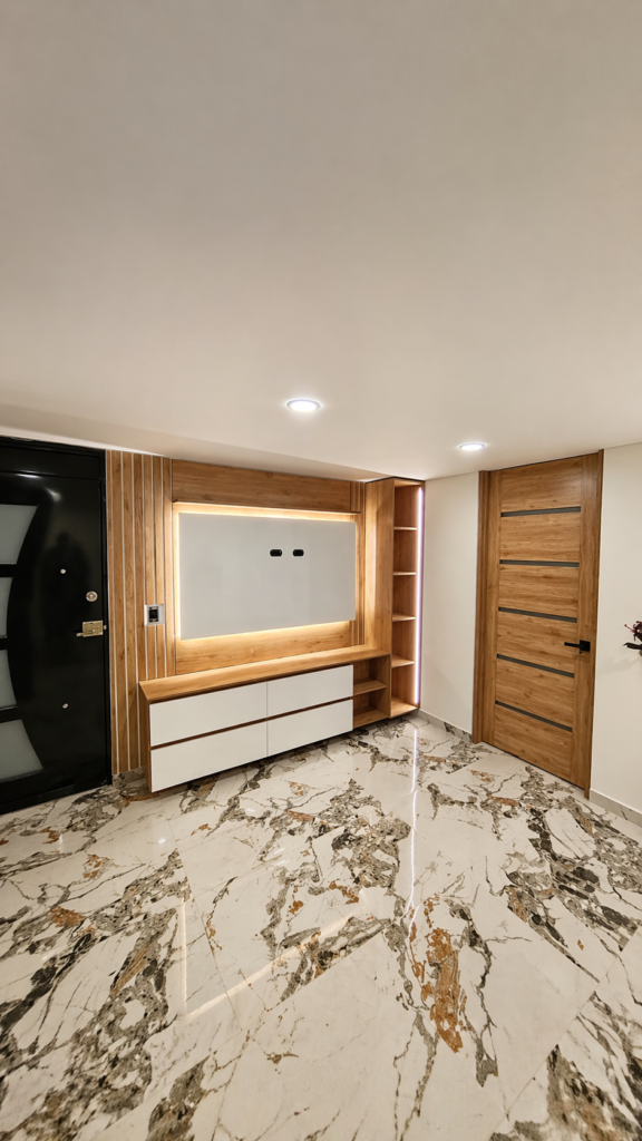 Diseño y adecuación de espacios con muebles a medida, optimizados para funcionalidad, estilo y aprovechamiento del espacio.